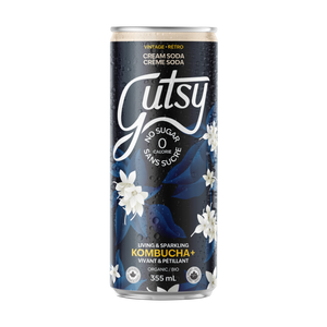 Sois la meilleure version de toi-même grâce à Gutsy. Nous avons enrichi notre délicieux kombucha+ sans sucre avec plus de plantes, plus de bulles et encore plus de bienfaits. Avec des gousses de vanille, des feuilles de stévia infusées et du jus de citron biologique pour un goût délicieux ! Une fermentation prolongée pour renforcer les petits gardiens de ton intestin — les héros qui maintiennent ton ventre et ton cerveau en pleine forme. Savoure la douceur sucrée qui rappelle le crème soda, avec la tranquillité d'esprit que procure une boisson sans sucre ni calorie.